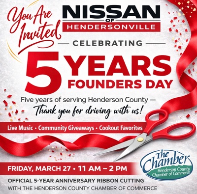 Join us as we celebrate fellow member's Nissan of Hendersonville, celebrating 5 years of serving Henderson County with their Founders Day Celebration!